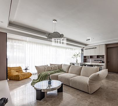 本案在户型改动上仅保留两间卧室和一间多功能房。把原有的书房并入主卧做成衣帽间,增大主卧的收纳空间。而主卧原有的衣帽间则并入女儿房,实现的双衣帽间的功能。多功能房联通生活阳台,既美观又不影响使用。