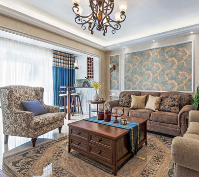 此案一家六口,因此居住人口比较多,所以选择了打造温馨,自然的美式风格,在家具的选择上会选择传统美式的款式,但是在软装的搭配上,用一些亮色来提升整个空间的时尚感!